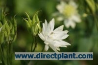 Deze hybride Akelei bloeit wit van juni-juli en wordt 60 cm hoog.