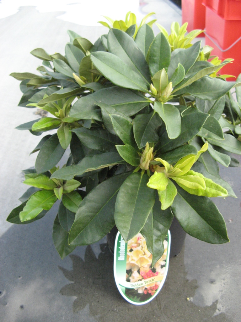 Een dwergrhodo, hij wordt ongeveer 100cm hoog en breed.